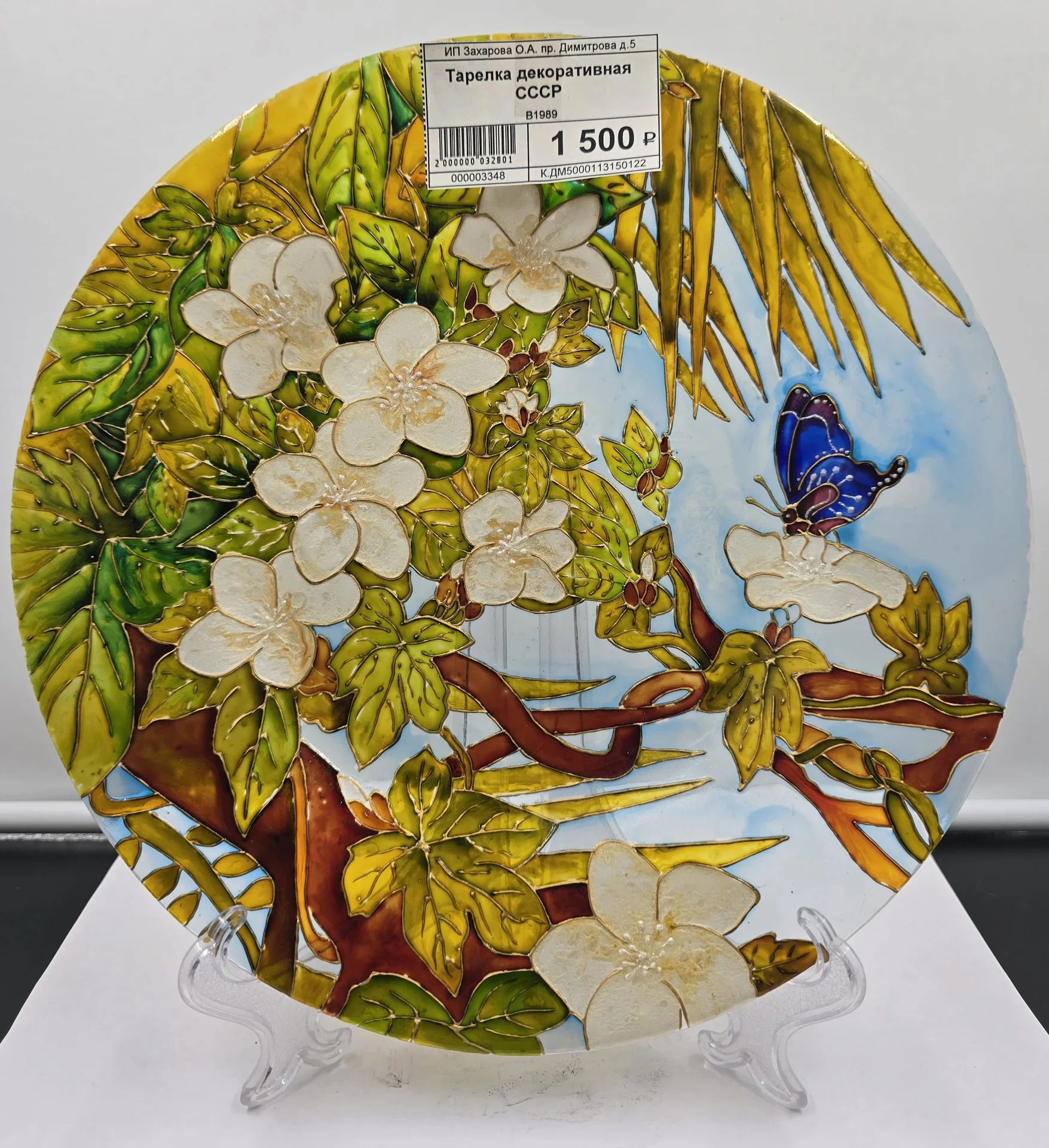 См. фото Тарелка выполнена в технике витражной росписи.