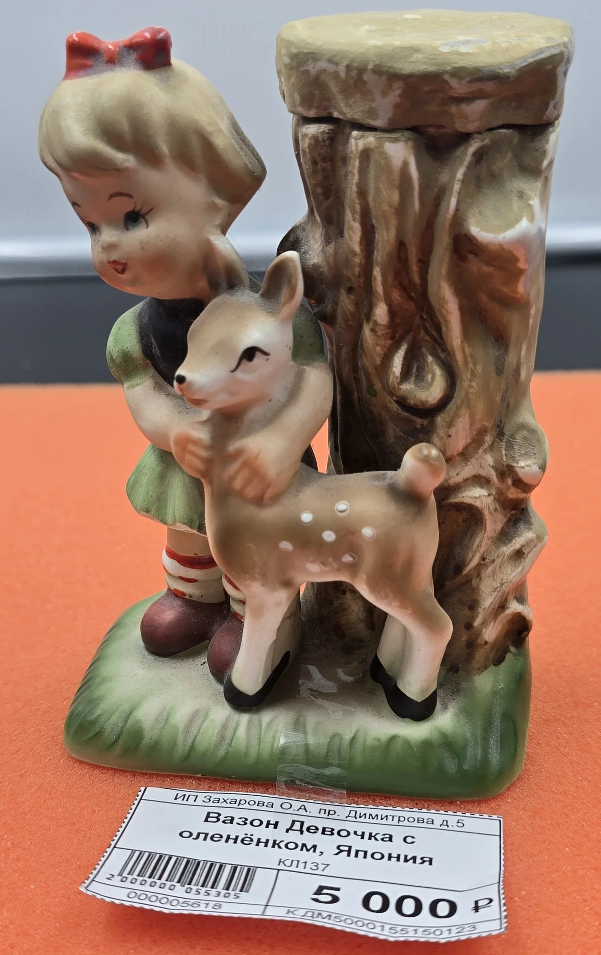 Статуэтка "Девочка с оленёнком" из Японии. Девочка обнимает оленёнка, оба стоят рядом и создают теплую и милую сцену. Чудесный предмет для коллекции или украшения интерьера, выполнен с тонкой детализацией и доброй атмосферой.