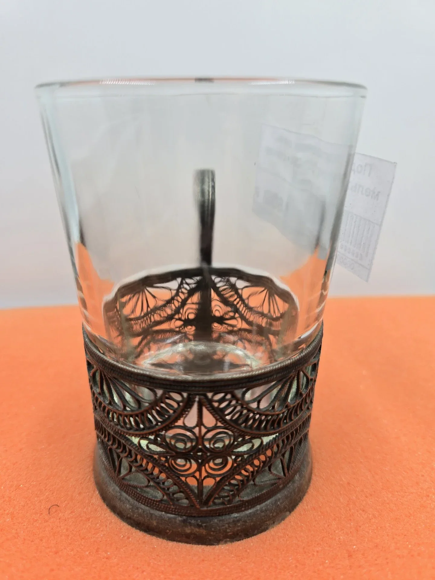 Подстаканник со стаканом, скань (филигрань), мельхиор, СССР